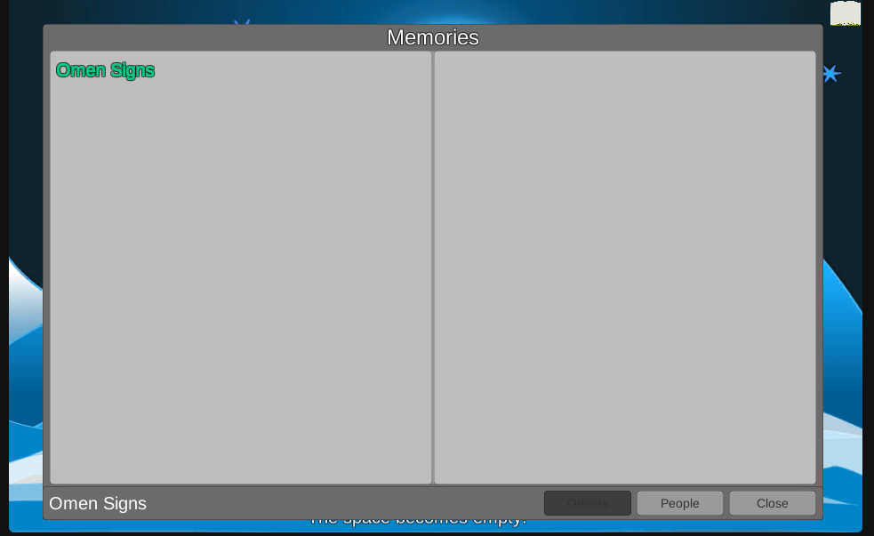 Your journal provides you with all the information you know, or remember, about your past. It keeps a log of the omen signs you are aware of, the people you’ve met and your relationship level with them, and the memories of your past you’ve revealed/decided on.